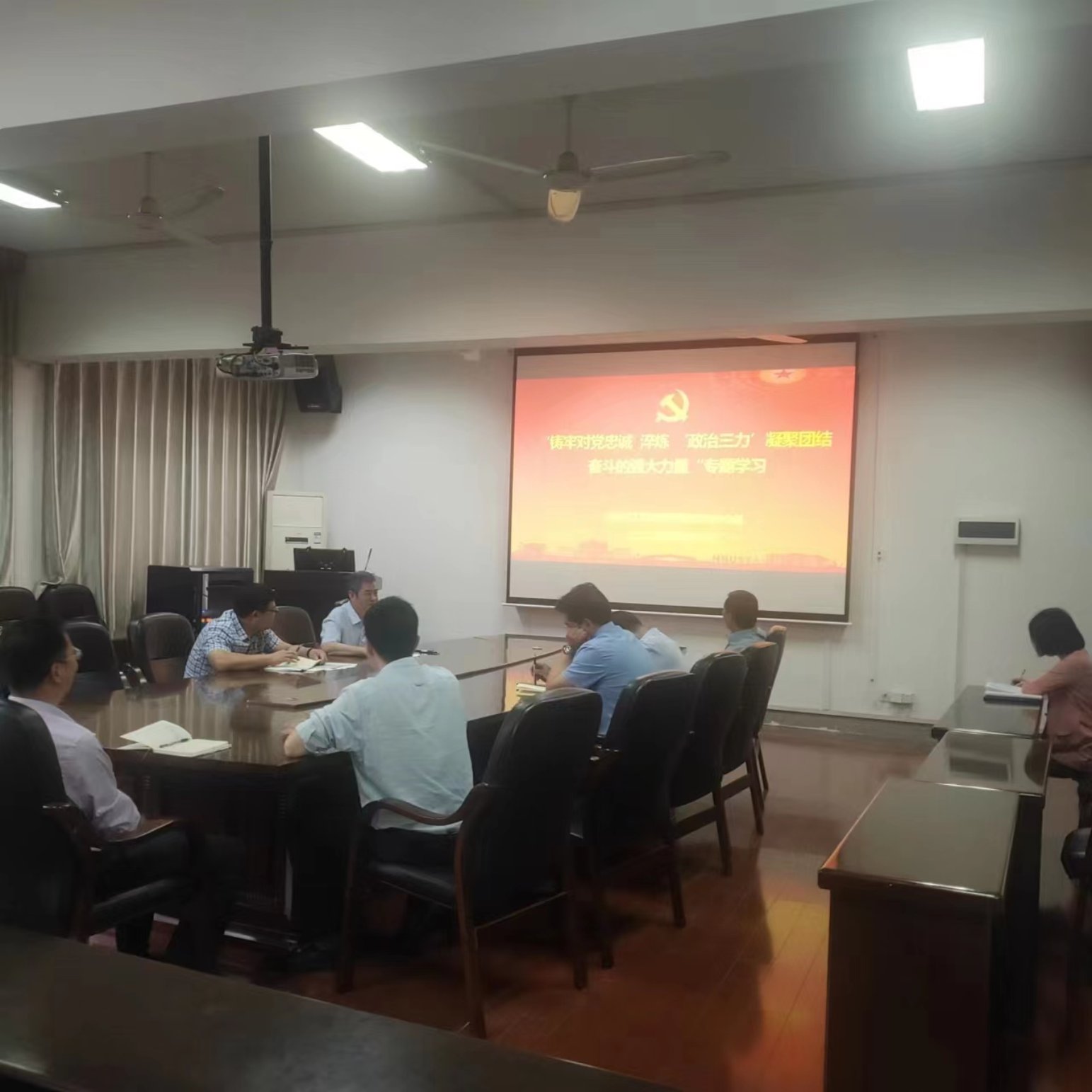 5月16日上午,化学化工公司党委理论学习中心组在化工楼310会议室举行“铸牢对党忠诚淬炼‘政治三力’凝聚团结奋斗的强大力量”专题集中学习,公司党委书记周文革主持。