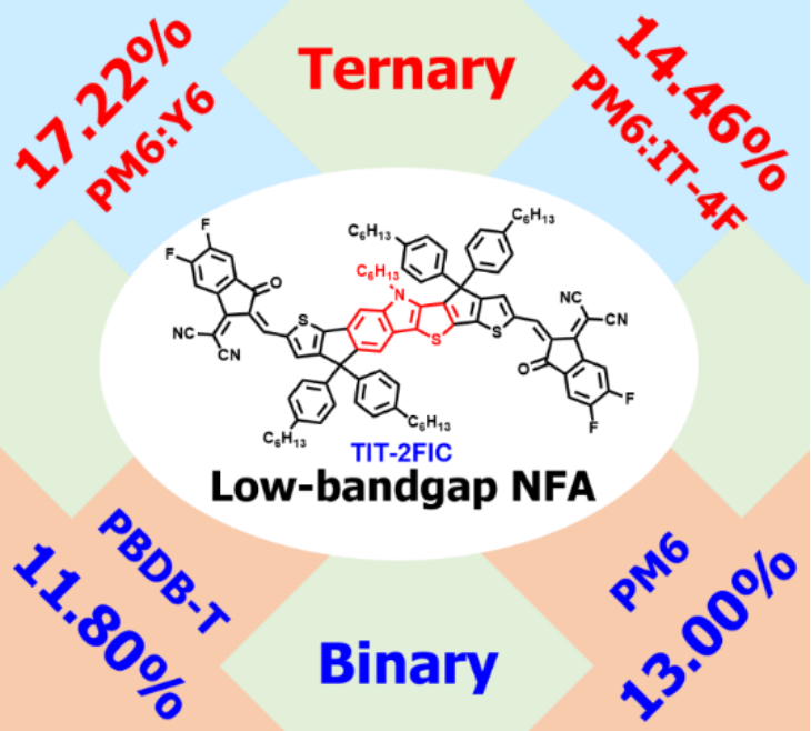 图1. 噻吩并吲哚核小分子受体材料TIT-2FIC的化学结构和光伏性能
