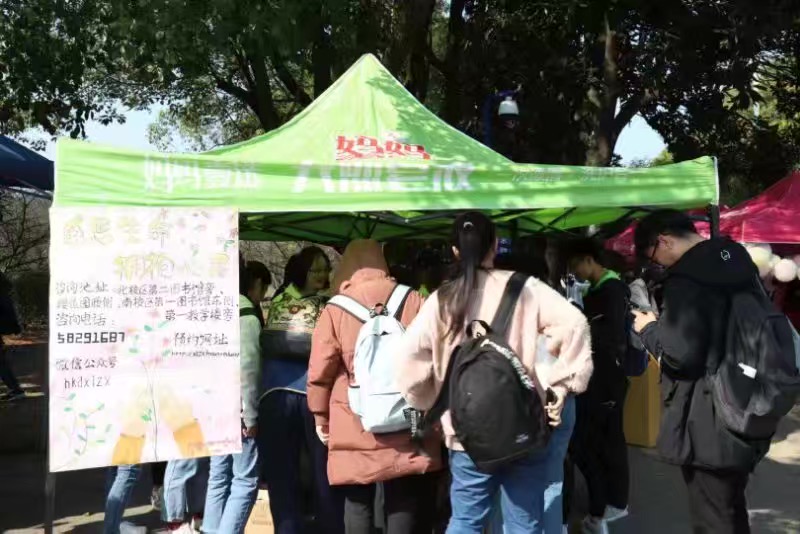 大家都在午饭时刻相聚在明湖广场我们的活动比预定时间超出许多那还不是因为我们的游戏太好玩,奖品很丰厚,零食巨好吃嘛。没想到来玩游戏的各位同学都对我们的道具眼冒小星星呢    大家排队排的我们的小棚子都装不下啦 今年没有玩嗨的小伙伴不要气馁哦(´-ω-`)我们可以期待下学期的活动哟,活动多多,惊喜满满。