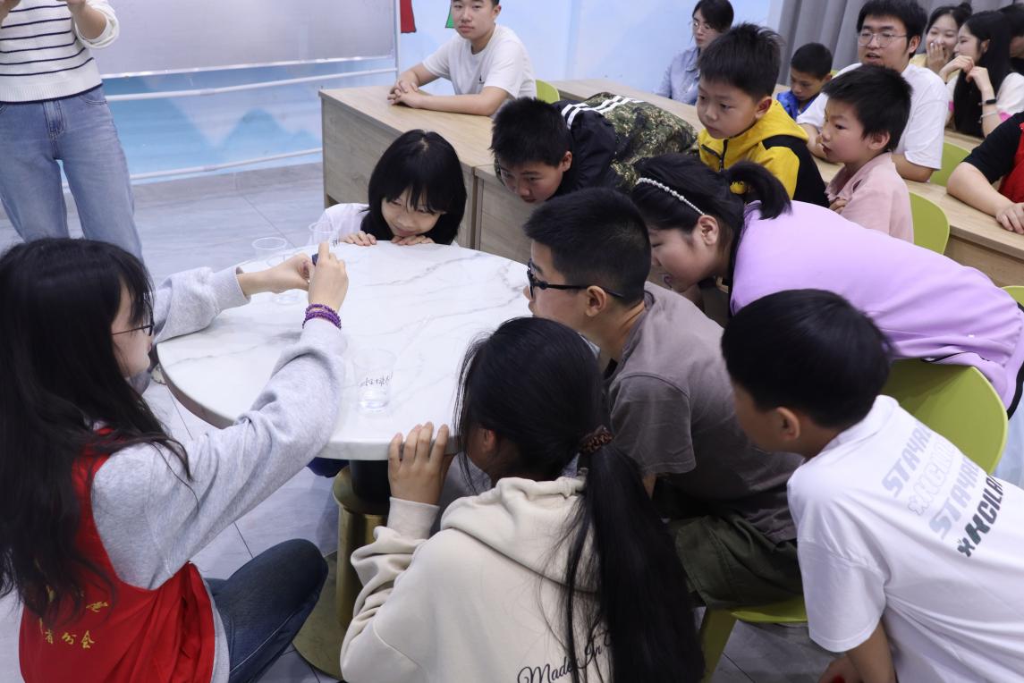紧接着,员工党员罗奥雅以“科学报国”为主线,讲述了我国著名化学家侯德榜,张青莲,陆婉珍,屠呦呦的化学事迹中的党史故事,阐释了科学家精神与共产党员使命的共通之处。随后,为了让小朋友们更直观地感受科学的魅力,员工党员们带领他们进行了“自制灭火器”和“百变液体”两个互动实验,“哇塞老师,这个真的变色了诶!”小朋友们亲眼目睹了实验过程中产生的神奇变化,不禁发出阵阵感叹。