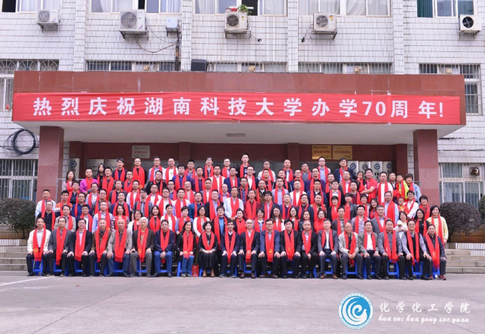 三、11月2日下午3:30,员工们在化学楼前坪共同拍照留念,现场气氛热烈。