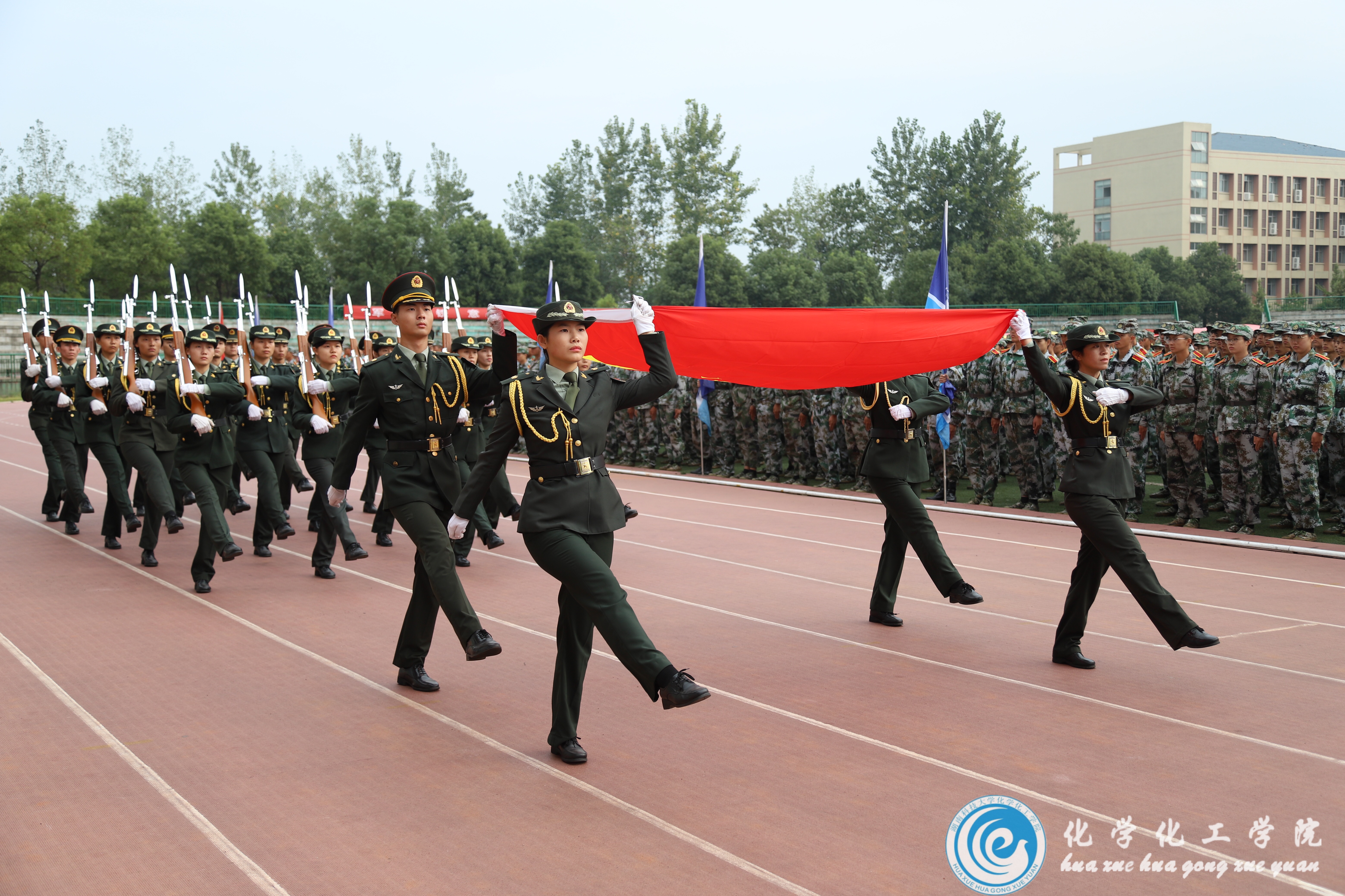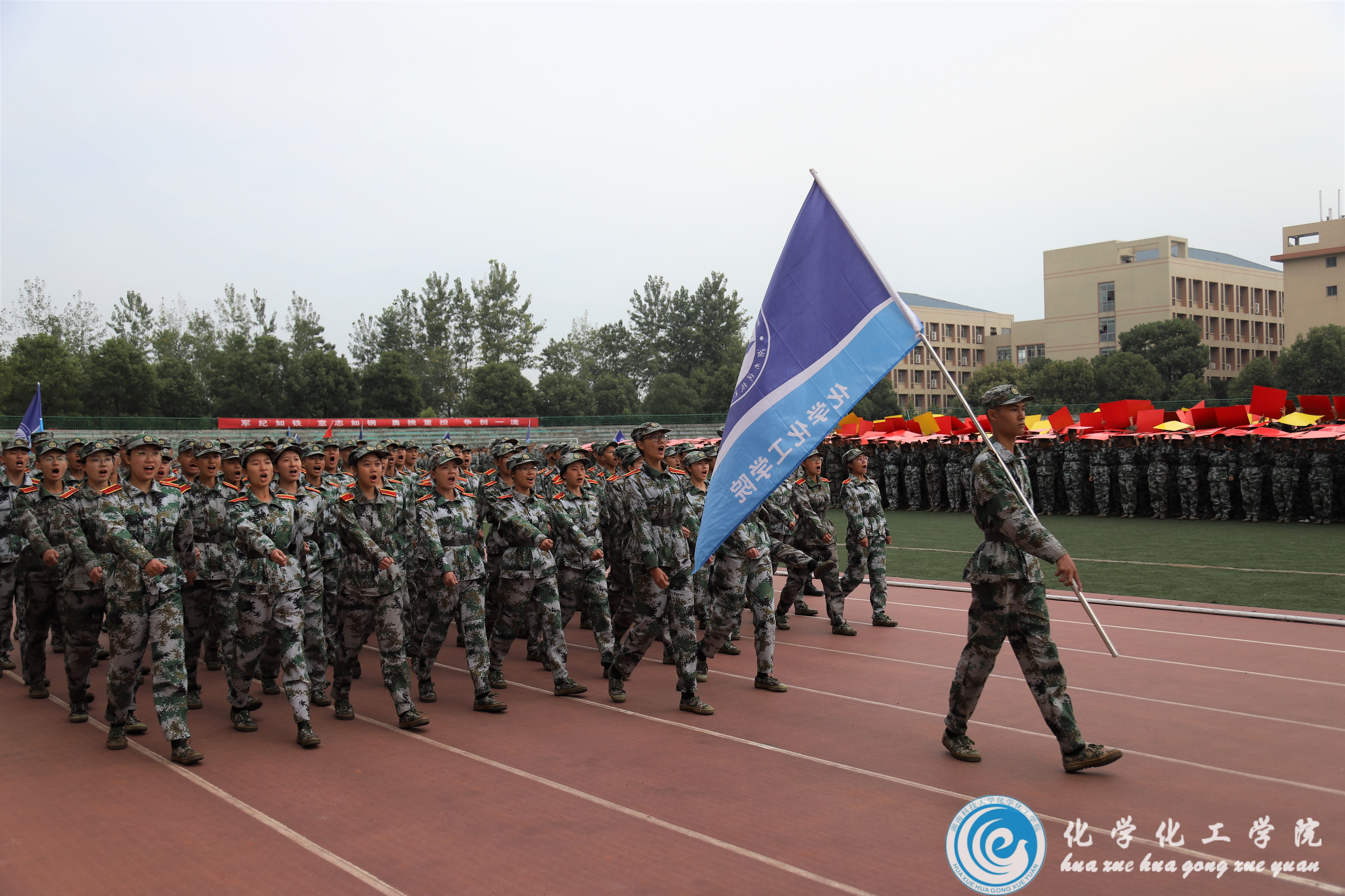秋风习习,偌大的北校田径场里,8000多名身穿绿色迷彩服的大一新生排成方阵。他们以饱满的精神,飒爽的军姿迎接着军训的最后一刻。