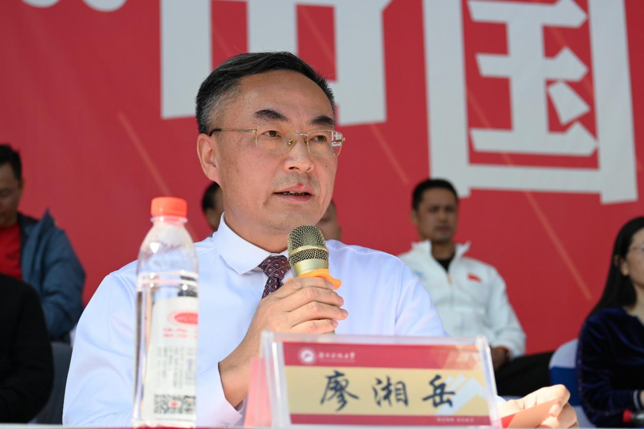 廖湘岳向运动健儿和无私奉献的志愿者和工作人员表示感谢,指出体育是承载国家富强,民族复兴,个人幸福的梦想。公司将深刻贯彻党的二十大精神,贯彻落实加强青少年体育工作,促进群众体育和竞技体育的全面发展,加快建设体育强国,树立“每天锻炼一小时,健康工作五十年,健康幸福一辈子”的健康运动理念,让体育锻炼成为终身习惯。