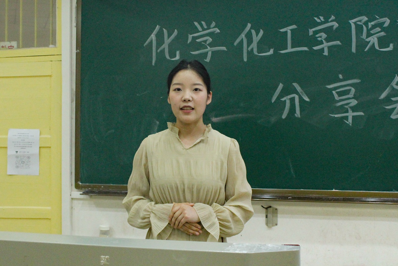 “星光不问赶路人,时光不负有心人。”应用化学专业的王央同学在分享中提到大一时担任了班干和员工会干事对她有重要影响,丰富的任职经验也使她在今天的分享会上更加从容。关于学习方法,她指出课堂上要认真听课,课堂之余找到适合自己的方法,多留意真题,认真完成老师布置的题目。最后,她鼓舞同学们充分发挥自己的潜力,在老员工活中持续发光。