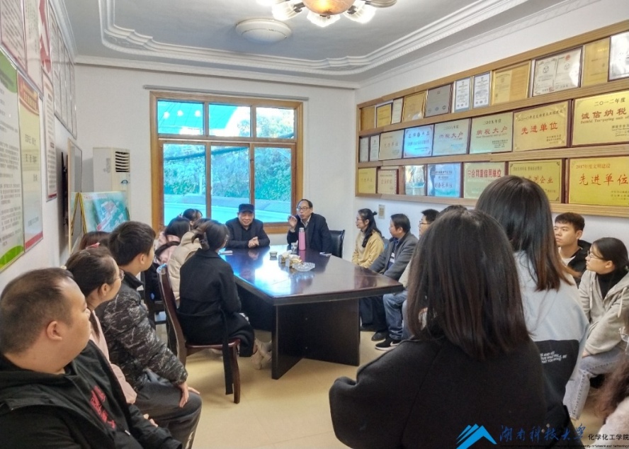 湖南太阳电力电瓷电器制造有限公司创始人、优秀基层共产党员、原大林村村支书杨大生先生,以亲身经历向实习队详细介绍了公司从无到有,从国内走向国际的创业历程和建设美丽乡村、捐资办学的先进事迹。杨大生虽然只是一名普通党员,但是他始终以村里的发展为追求,积极为家乡脱贫致富贡献力量,他的行动正是脱贫攻坚一线基层党员的缩影。杨大生的初心和坚守,更加坚定了实习队员们要全身心投入到党的教育事业中去,坚守为党育人,为国育才使命的决心。