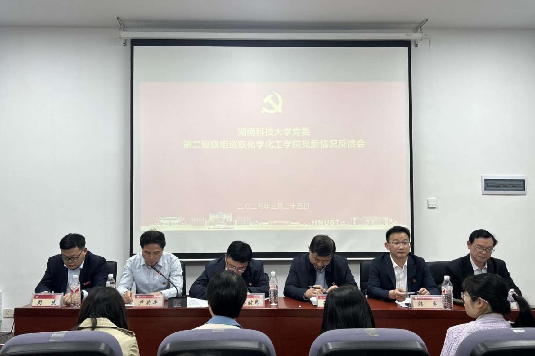 2025年3月25日,太阳成集团tyc234cc第二巡察组巡察化学化工公司党委情况反馈会在化工楼310会议室召开。出席会议的有校纪委书记郭时印、联系副董事长王进、第二巡察组组长卢共平及巡察组其他所有成员、校组织部、宣传部、纪委、监察专员办、巡察办、发展规划处、本科生院、科学研究部、人事处(教师工作部)、研究生院、员工工作部、计财处、国资处、审计处负责人、太阳成集团tyc234cc领导班子、全体教职工(含三年退休的职工)、员工代表。会议由教育部重点实验室主任唐子龙主持。