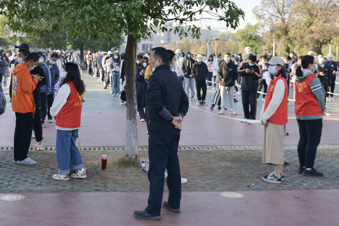 旭日东升,第一田径场的地面上洒满和煦的阳光,公司学子正有条不紊地排队候场进行核酸采样。公司党委副书记周小明来到采样现场,指导同学们的核酸采样工作。他与同学们亲切交谈,叮嘱同学们疫情之下不仅要做好个人防范措施,也要保持良好的心态,养成良好的生活习惯和规律的生活作息,支持公司的防疫工作。