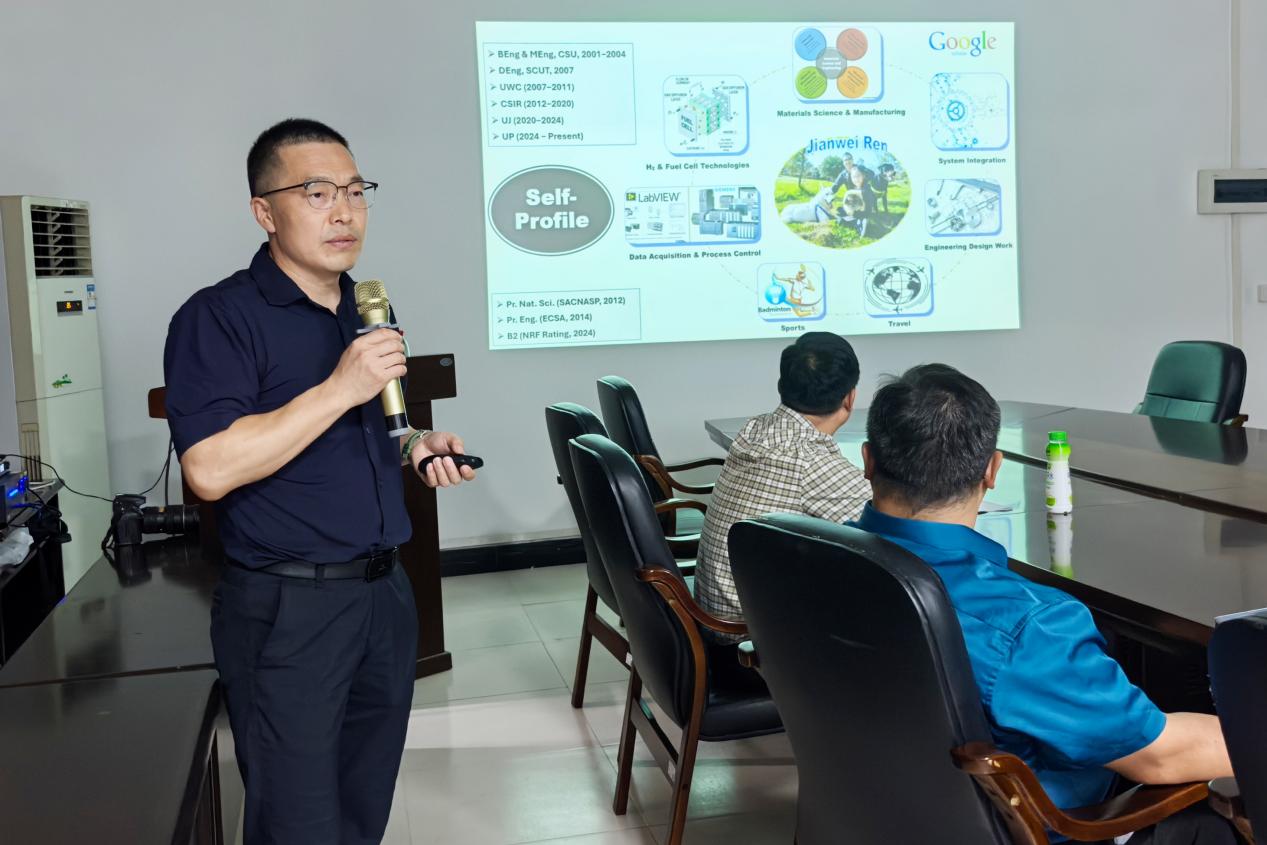 会议伊始,任建伟教授分享了他在南非的工作生活经历,并介绍了南非的历史文化、资源分布和发展现状。会议中重点探讨了中国与南非双方在研究合作、员工培养等方面的潜在机会,并表示比勒陀利亚大学与太阳成集团tyc234cc在新能源、水资源等研究领域可加强进一步的合作。任教授还介绍了南非的教育体系和科研环境,鼓励员工拓宽国际视野。