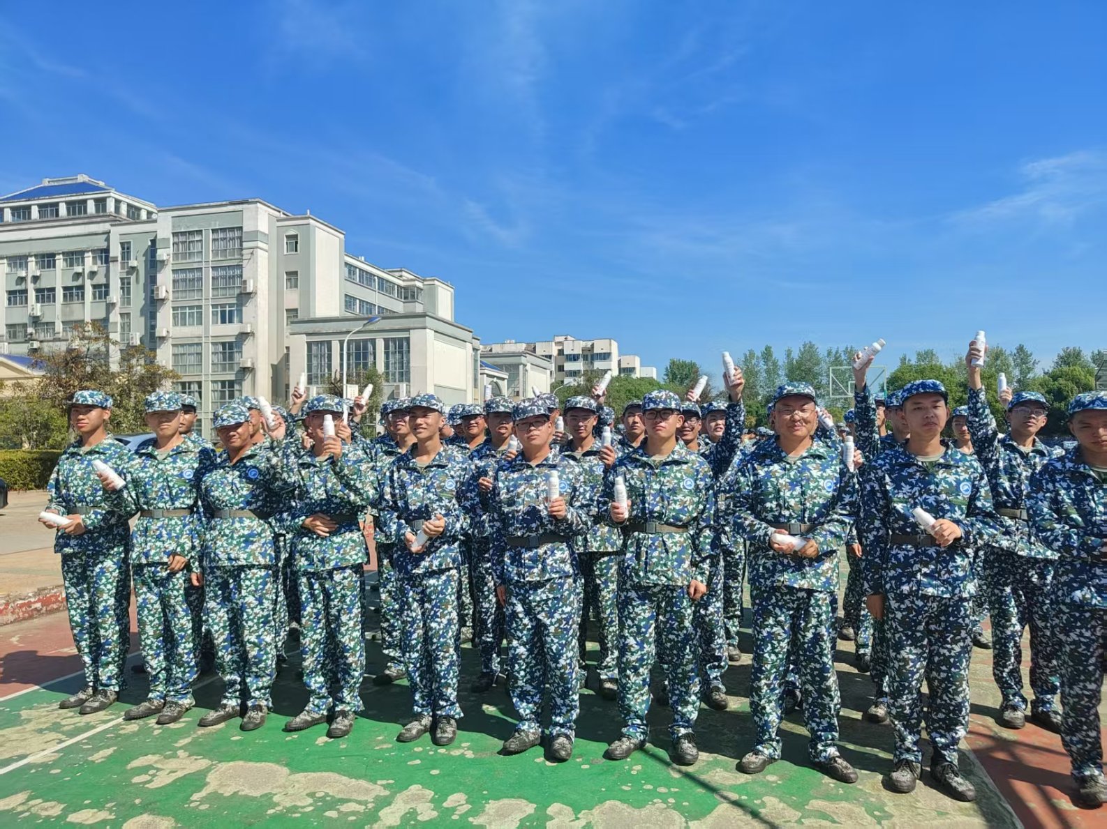 秋阳似火,情谊似金。近日,太阳成集团tyc234cc2005级应用化学专业员工、广东悦榕化妆品有限公司董事长周波向正在参加军训的2025级新生及教官捐赠3000瓶“活力冰爽喷雾”,总价值约18万元,为烈日下的军训送来了一份“清凉关怀”。