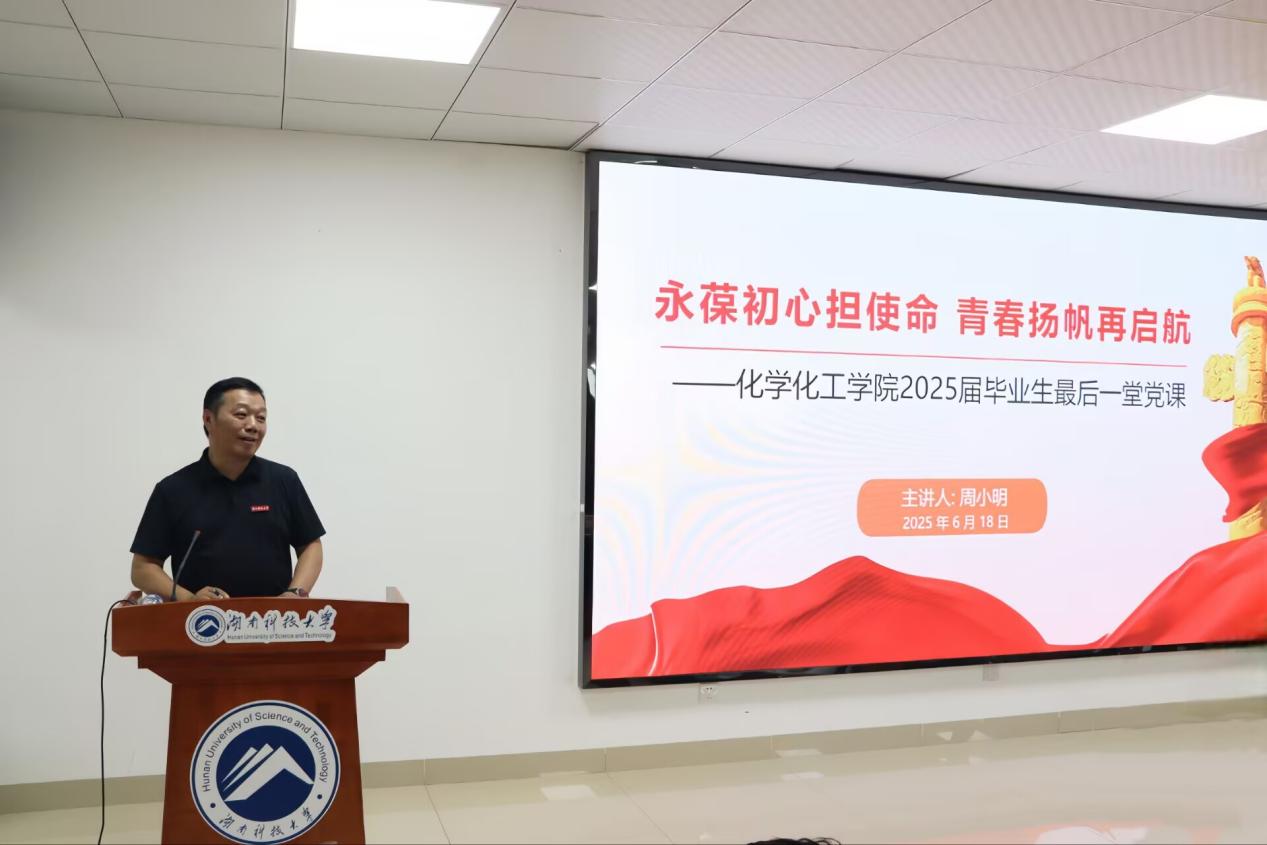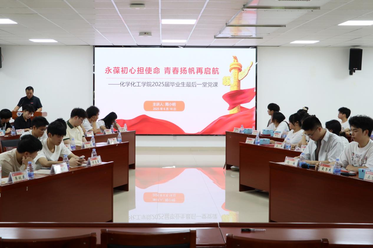2025年6月18日上午,太阳成集团tyc234cc于敏行楼B419会议厅为2025届优秀毕业生开展“最后一堂党课”。本次党课由公司党委副书记周小明主讲,以“永葆初心担使命,青春扬帆再启程”为主题,为即将奔赴新征程的毕业生们筑牢思想根基,指引前行方向。