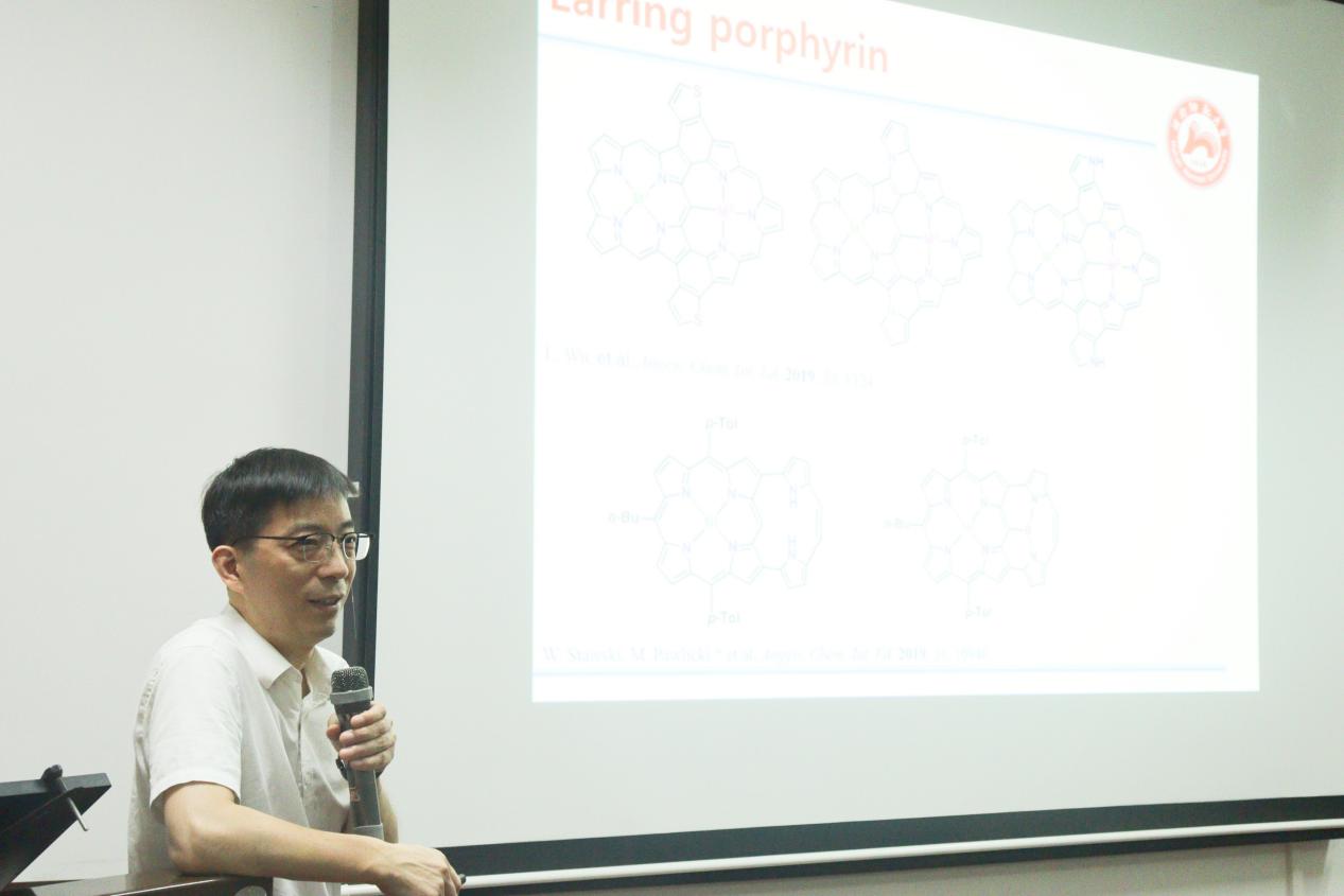 论坛第二阶段报告会分别由太阳成集团tyc234cc经理周虎教授、理论有机化学与功能分子教育部重点实验室主任唐子龙教授主持。大连理工大学彭孝军院士作了题为《精细化工2.0》的报告,北京大学戴志飞教授作了题为《声光诊疗药械的临床转化与挑战》的报告,日本京都大学Atsuhiro Osuka教授作了题为《Fused porphyrinoid chemistry》的报告,湖南师范大学宋建新教授作了题为《Constrution of earring porphyrins》的报告。