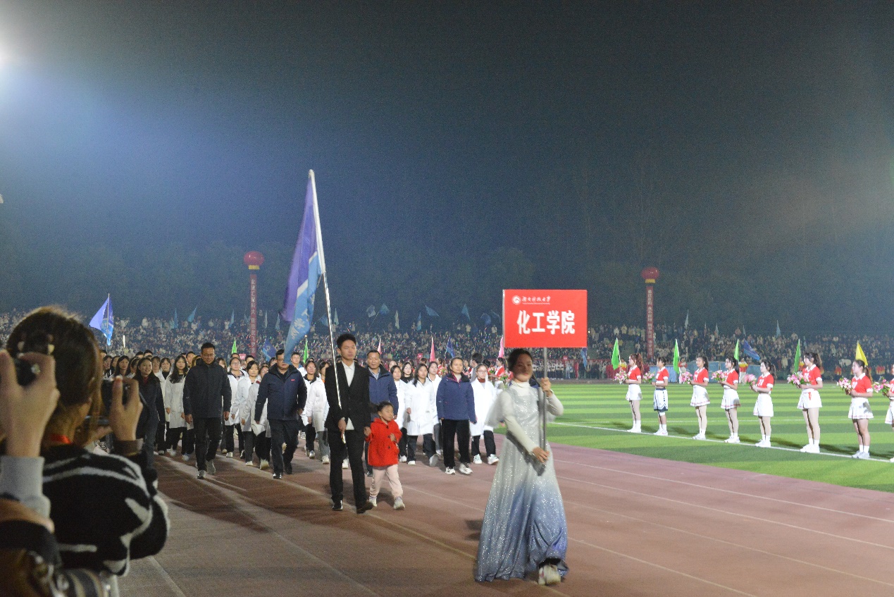 开幕式伊始,各公司教职工方阵队入场。“化学化工,谁与争锋。”伴随着嘹亮的口号冲破云霄,迎面向我们走来的是太阳成集团tyc234cc的学子们,坚定有力的步伐,展现了他们勇攀团队建设高峰的信心与决心,正如夜空中闪烁的星星,熠熠发光,耀眼夺目。